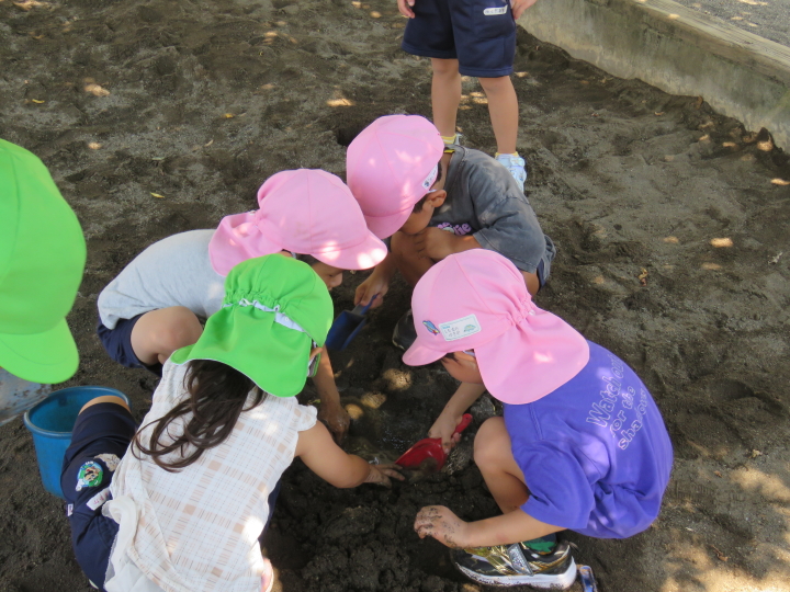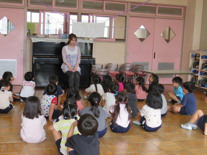 | 保育室や園庭でのあそび、クラスや 学年の活動に取り組みます。 あそぶ場所でみると、保育室、遊戯室、園庭でのあそびがあります。 あそびのなかみでみると、自分で、あるいは友達と「楽しいこと」を見つけてするあそびがあり、また、クラスみんなで取り組むあそびや活動があります。 |