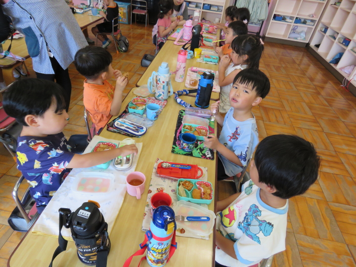昼食 お弁当や給食の時間も、とても大切です。楽しくたべること、好き嫌いをなくすこと、あと片づけがきちんとできること。おざなりにできないことが沢山あります。 |